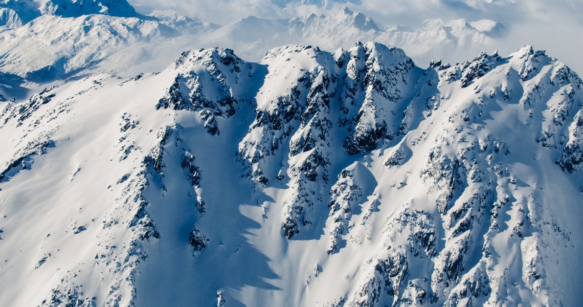 tiefverschneite Bergwelt mit glitzernder Schneedecke